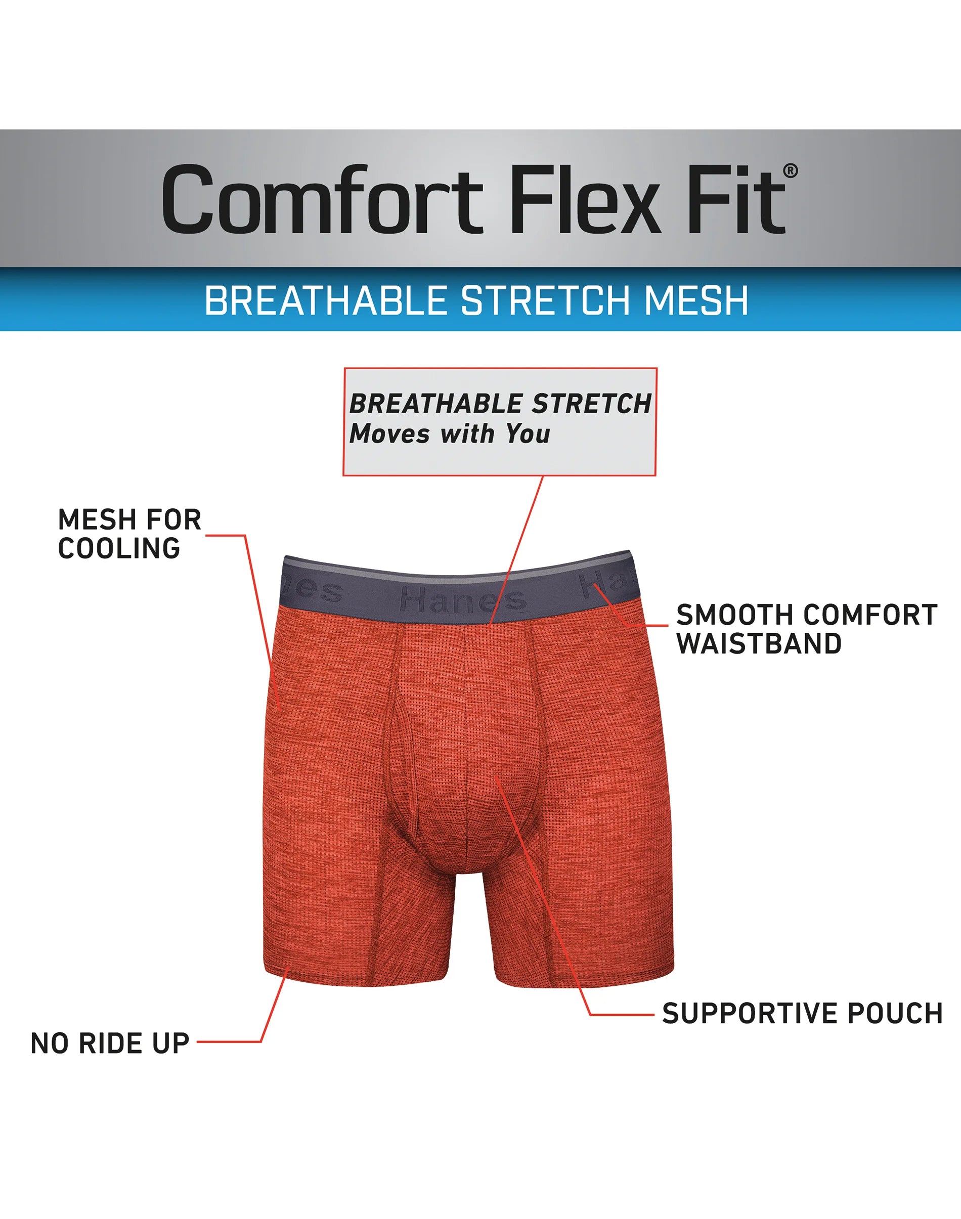 Hanes Comfort Flex Fit Men's Breathable Stretch Mesh Boxer Brief Underwear, Red/Green/Black, 3-Pack