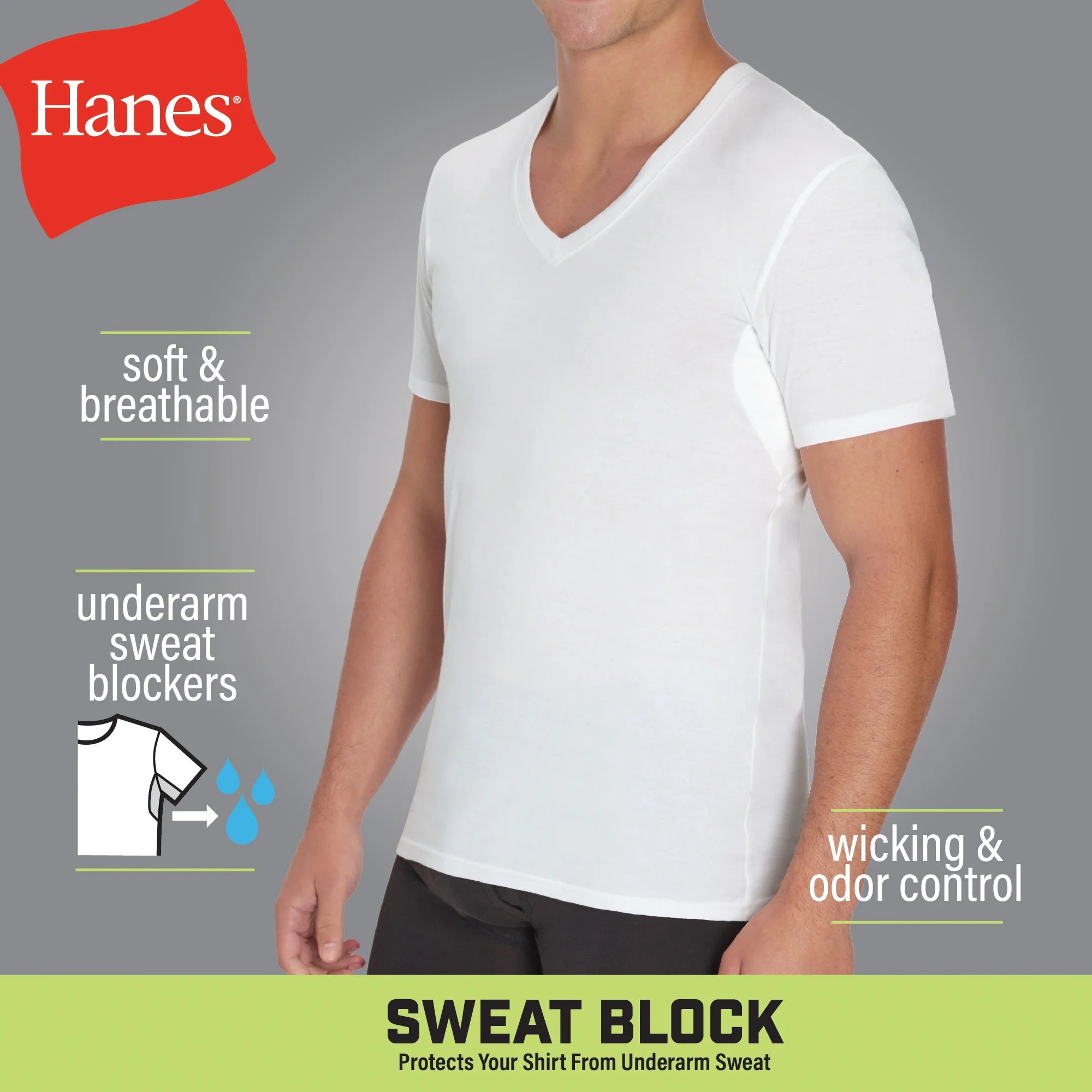 Hanes Men's Sweat Block V-Neck Tee, White, 3-Pack