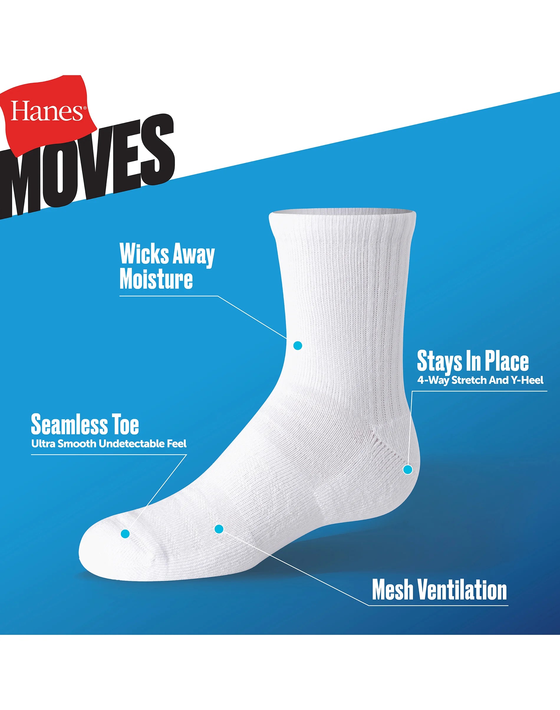 Hanes Moves Ultimate Boys' Seamless Stretch Mid Crew Socks, 6-Pairs
