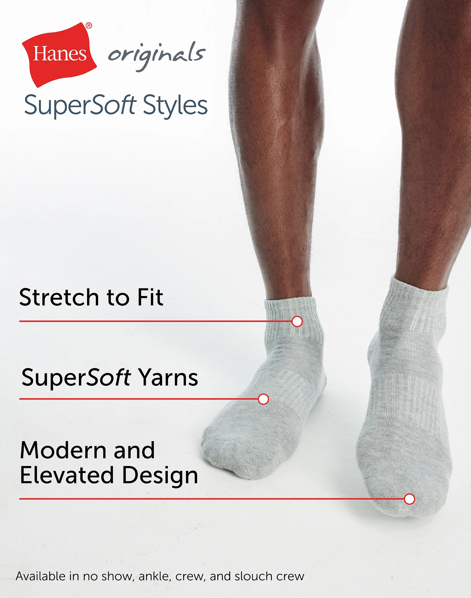 Hanes Originals Men’s SuperSoft Ankle Socks, 3-Pairs