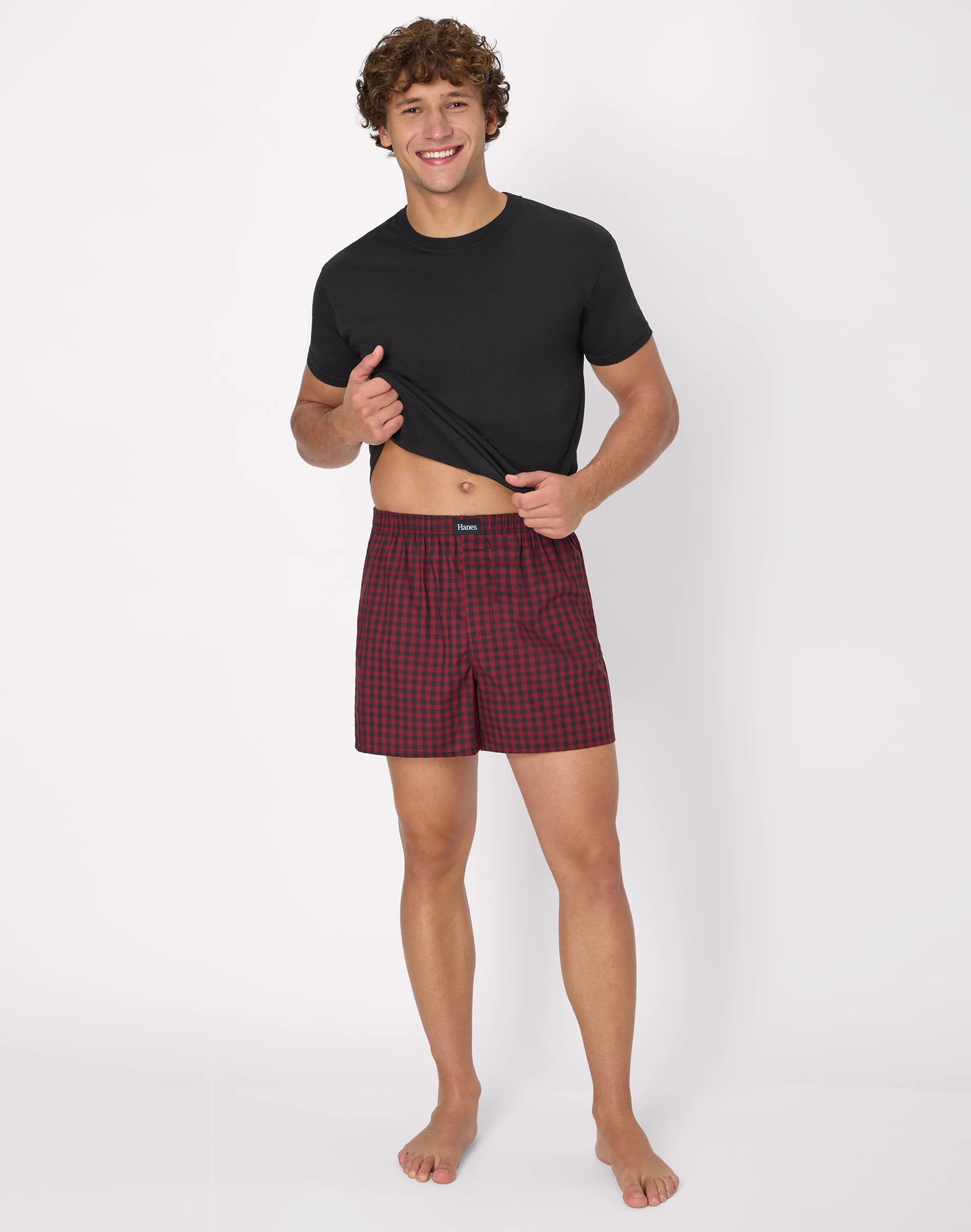 Hanes Originals Ultimate Men's Cotton Stretch Woven Boxer Underwear, Red/Black Plaids, 3-Pack