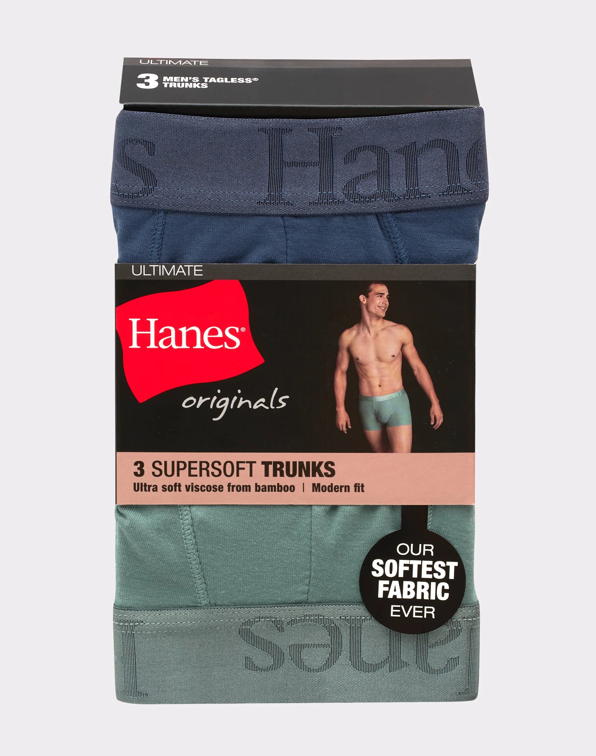 Hanes Originals Ultimate Men's SuperSoft Trunk Underwear, Assorted, 3-Pack