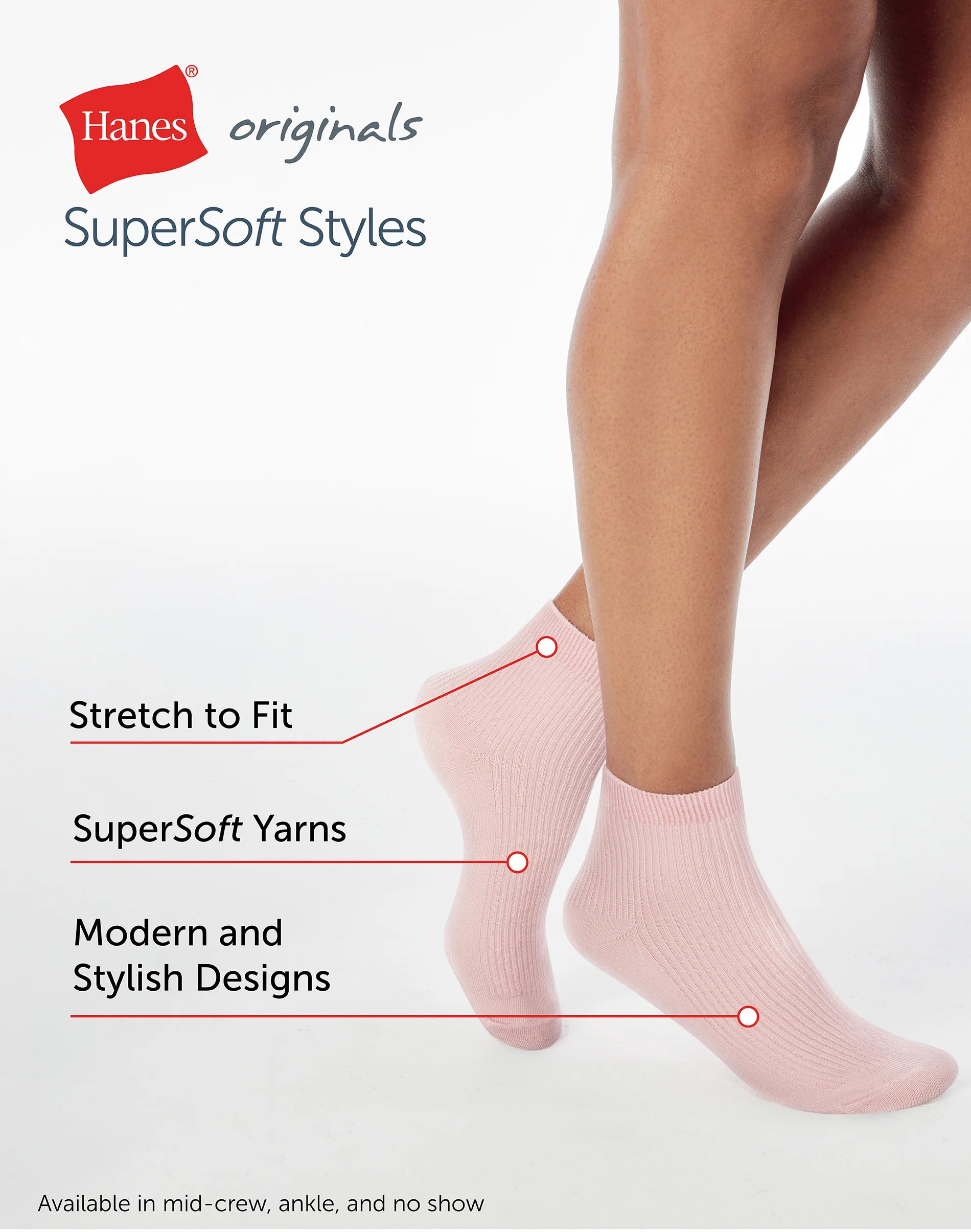 Hanes Originals Women’s SuperSoft  Ankle Socks, 6-Pairs
