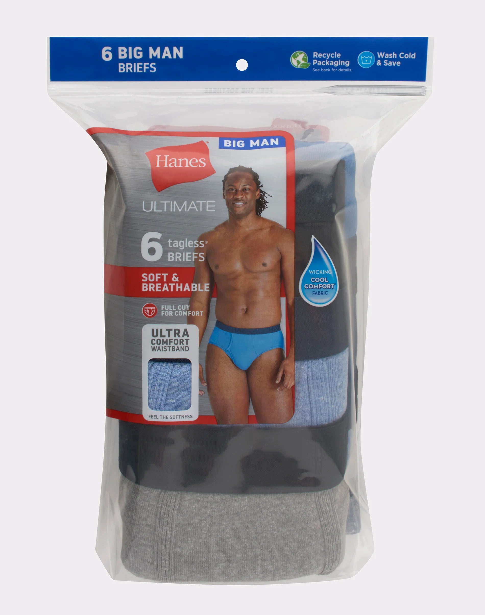 Hanes Ultimate Big Men’s Brief Underwear, Assorted Solids, 6-Pack, (Big & Tall Sizes)