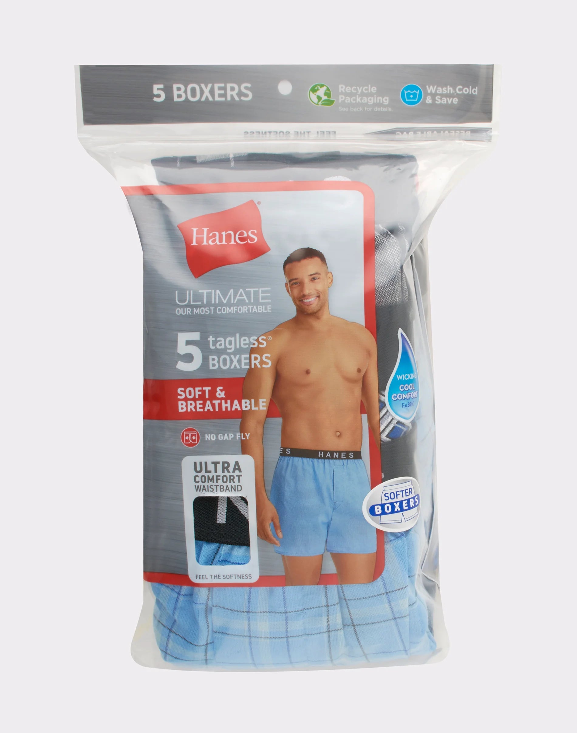 Hanes Ultimate Men's Boxer Underwear, Moisture-Wicking, 5-Pack