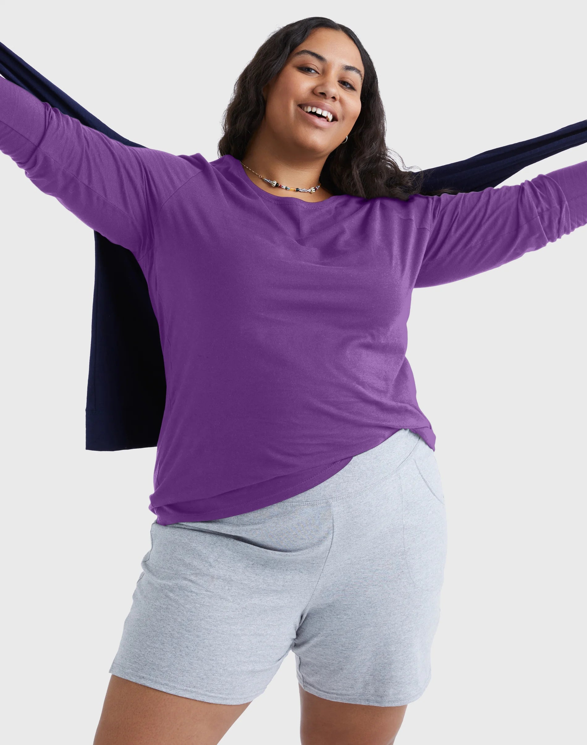 Hanes Women's Long Sleeve Scoop-Neck Cotton T-Shirt (Plus Size)